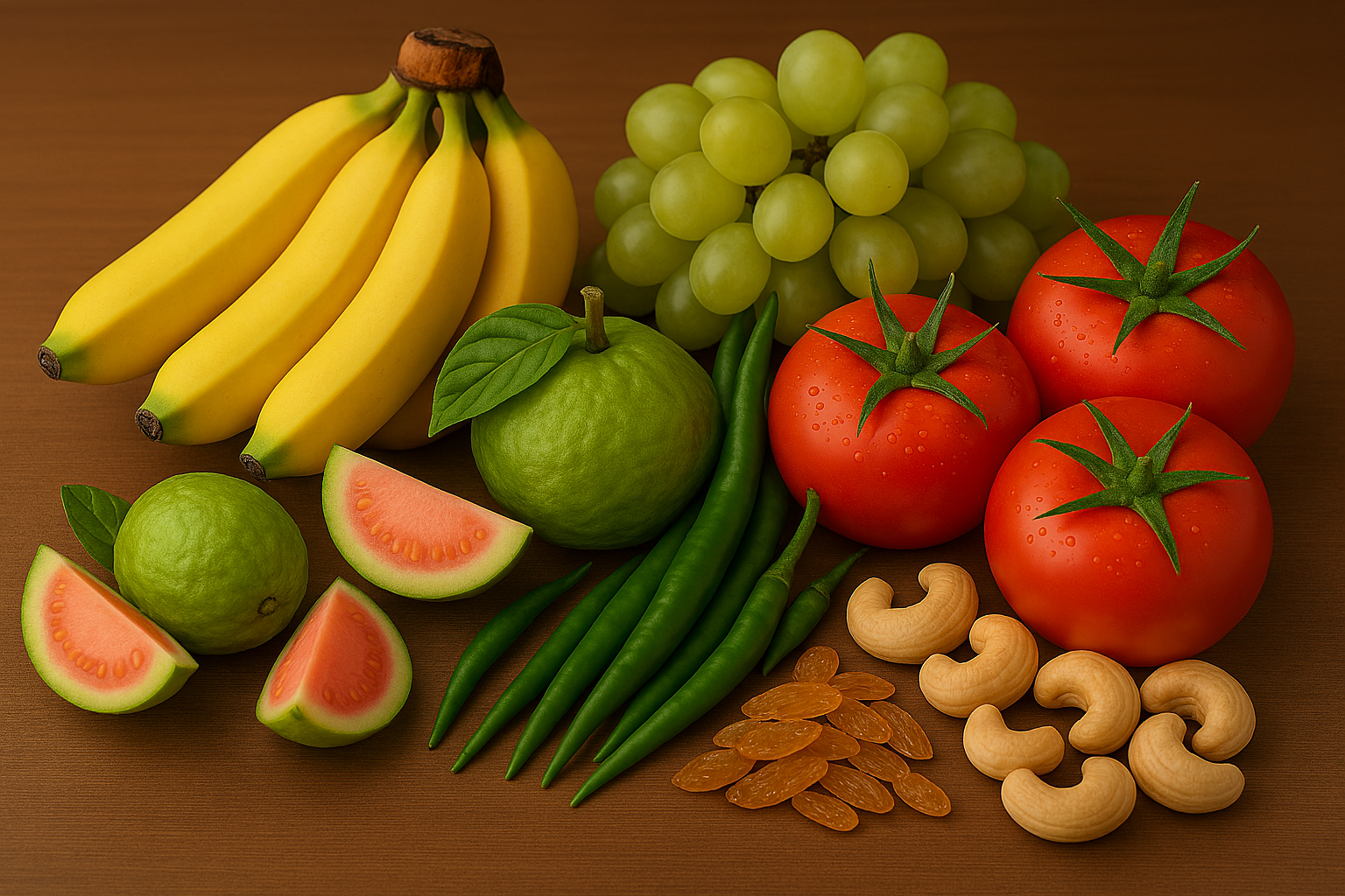 Fruitza Exports Private Limited is a trusted exporter of premium-quality Indian Fruits, Vegetables, and Dry Fruits. Our diverse product portfolio includes fresh Bananas, Grapes, Guavas, vibrant Chillies, juicy Tomatoes, and premium Dry Fruits like Cashews and Raisins—all carefully sourced, handled, and packed to preserve their natural freshness, taste, and nutritional value.